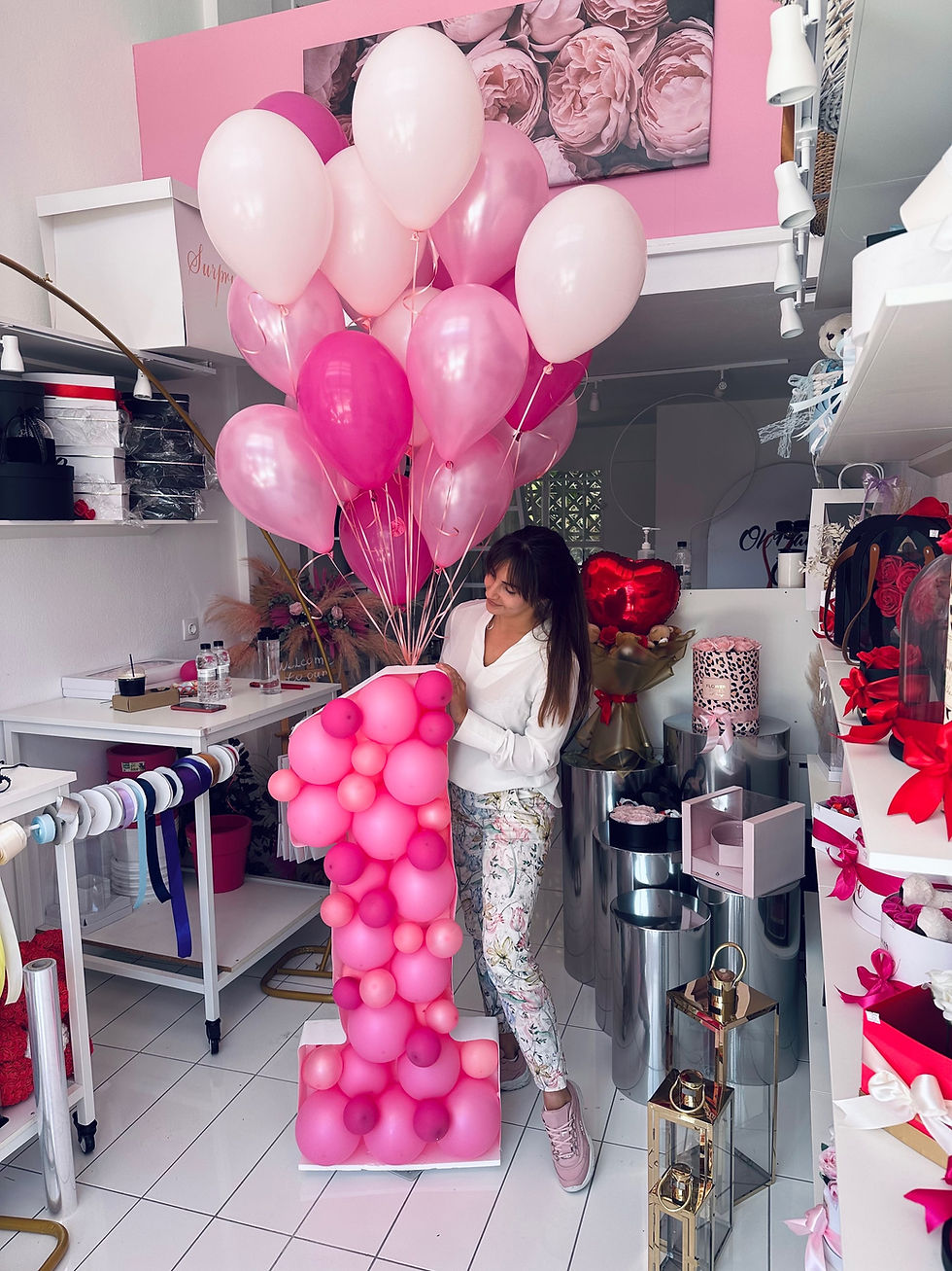 Inside the box there are 40 small balloons 5’ filled with helium. Because the smaller balloons are, the faster they lose air, it is recommended to deliver the box as close to the moment of opening as possible for the balloons to fly.