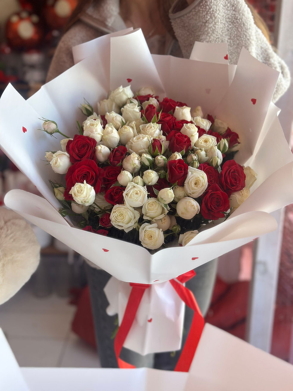 Mix white & red spray roses